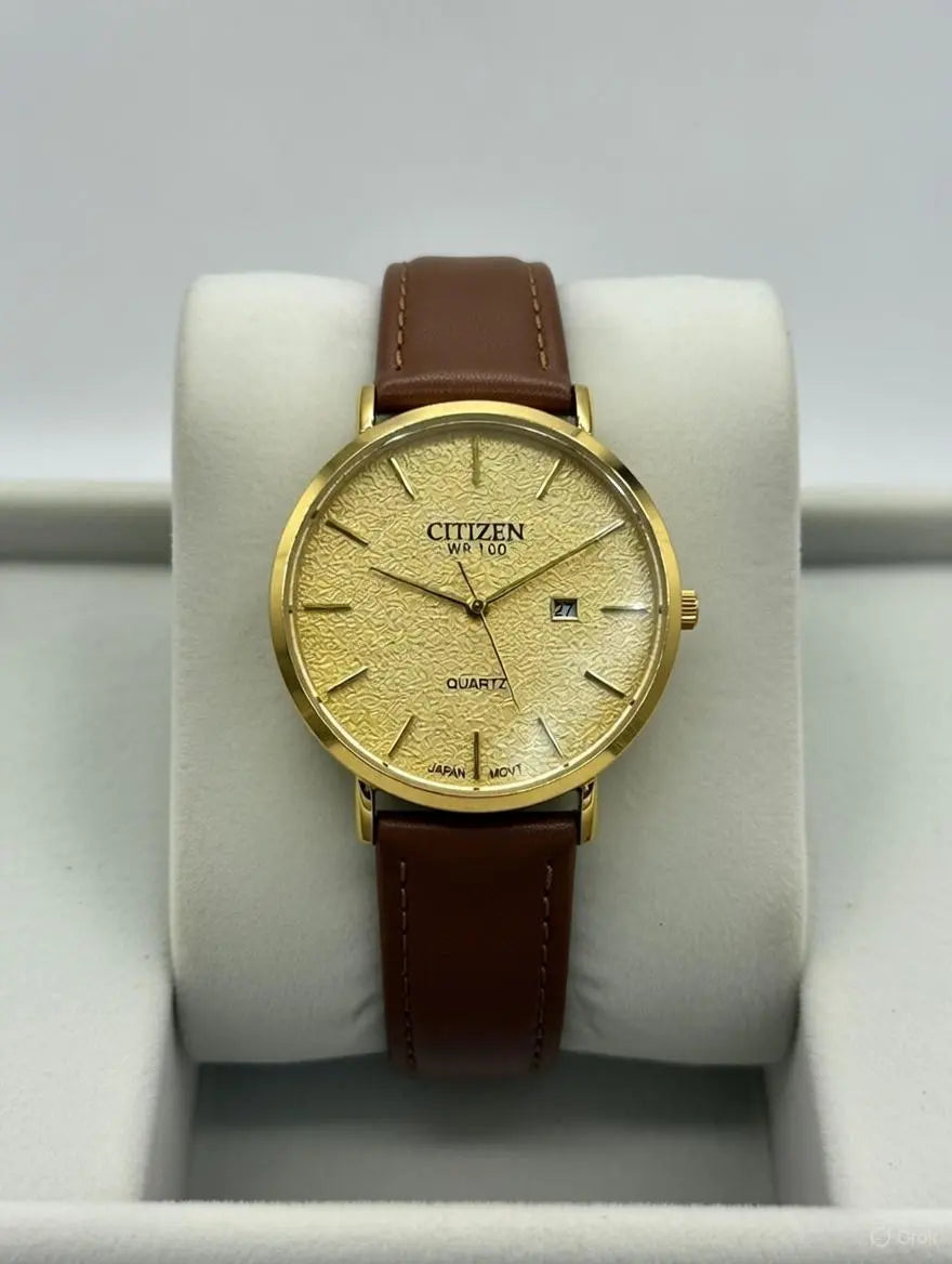 Ctzn Quartz Men's Luxury Watch With Leather Strap Precision meets refinement in this Ctzn quartz timepiece, engineered for the discerning gentleman. The reliable quartz movement delivers consistent accuracy, while the supple leather strap ages gracefully with daily wear. Clean dial design and polished case work in harmony—understated elegance that commands attention without excess. A versatile companion for boardroom meetings and weekend escapes alike.
